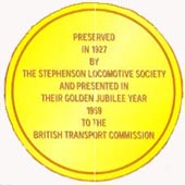 The locomotive was therefore repainted under the supervision of Society members who had researched the accurate colouring and lining used in Brighton days; it was possibly the most accurate restoration of any preserved locomotive in Europe at the time. Gladstone was formally handed over to the BTC at York on 18 September 1959 adorned with a circular plaque mounted on the buffer beam. (See right)