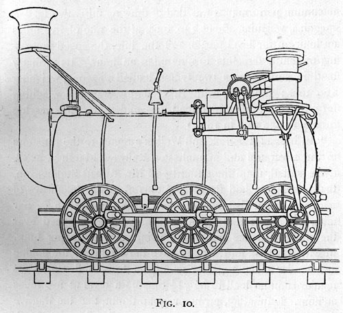 Some years after, the Killingworth engines were improved and simplified in several details. They were mounted on springs, and the wheels coupled by outside connecting-rods.